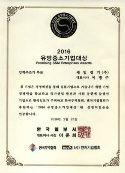 유망중소기업대상 압력주조기 부문